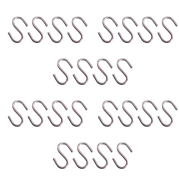 Upgrade your organization with this versatile set of 24 Stainless Steel S Hooks — designed for durability, convenience, and everyday utility. Made from high-quality stainless steel with a smooth finish, these hooks are lightweight yet strong, supporting up to 10 kilograms per hook. Perfect for hanging tools, kitchen utensils, bags, plants, clothes, and more — whether indoors or outdoors.
