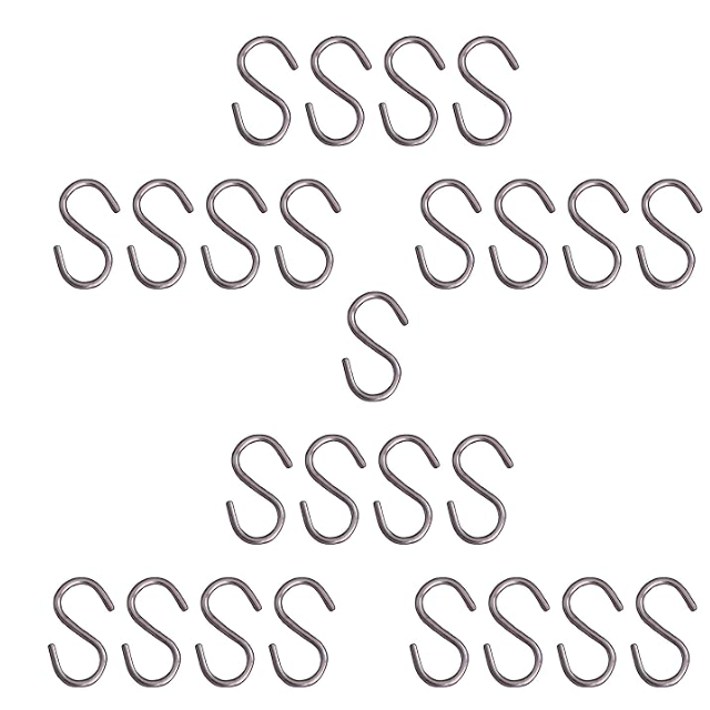 Keep your space organized with this Pack of 25 Stainless Steel S-Hooks. Made from durable stainless steel with a sleek finish, each hook is lightweight yet strong, supporting up to 10 kilograms. The versatile S-shape design allows easy hanging on walls, rods, or rails, making them perfect for kitchens, bathrooms, closets, garages, shops, cars, living rooms, and outdoor spaces.