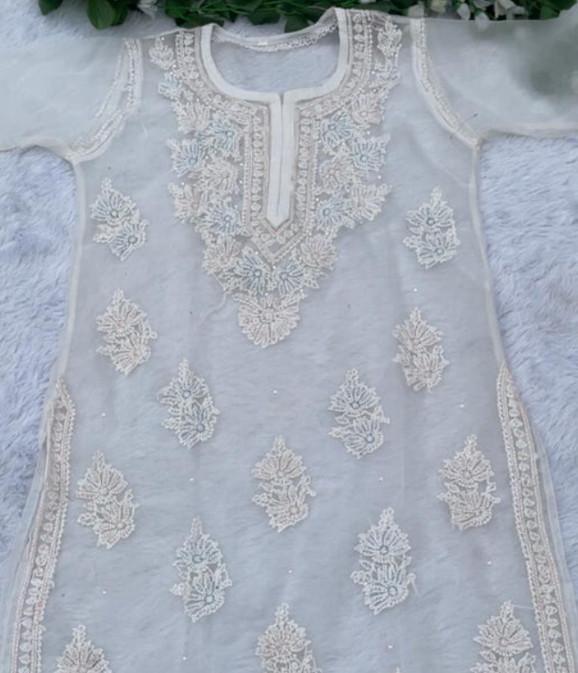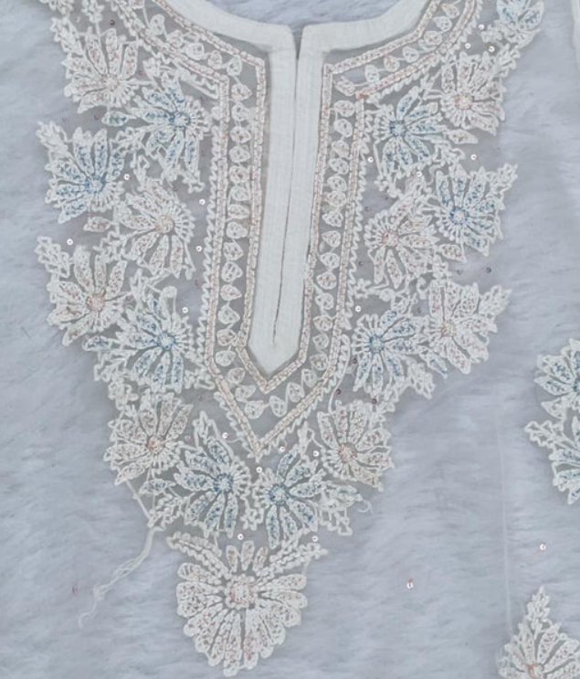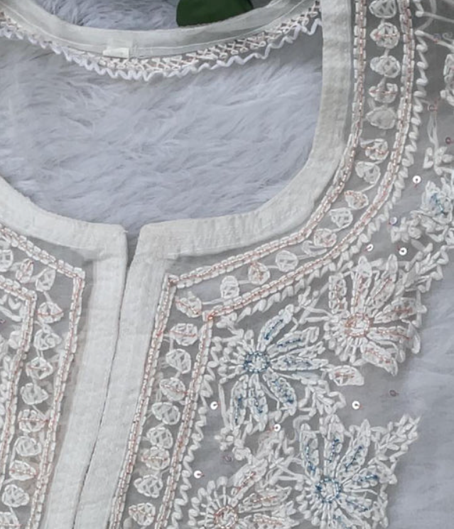 - Embroidery Color: White (tone-on-tone Chikankari embroidery)