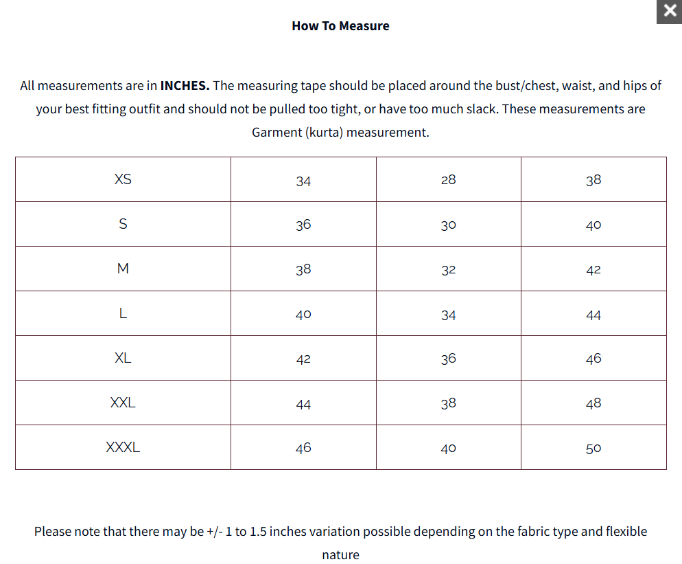 Available Sizes - XXS – 34