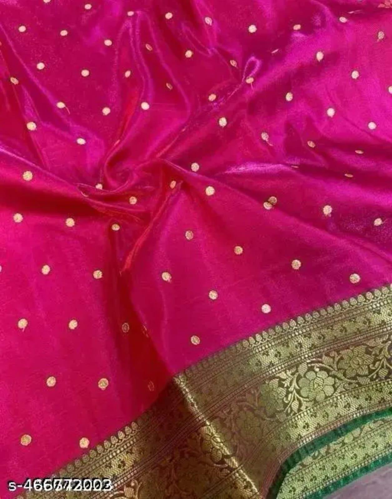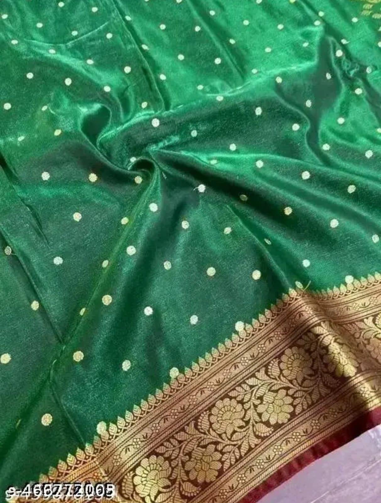 * Premium Banarasi weaving with rich gold zari