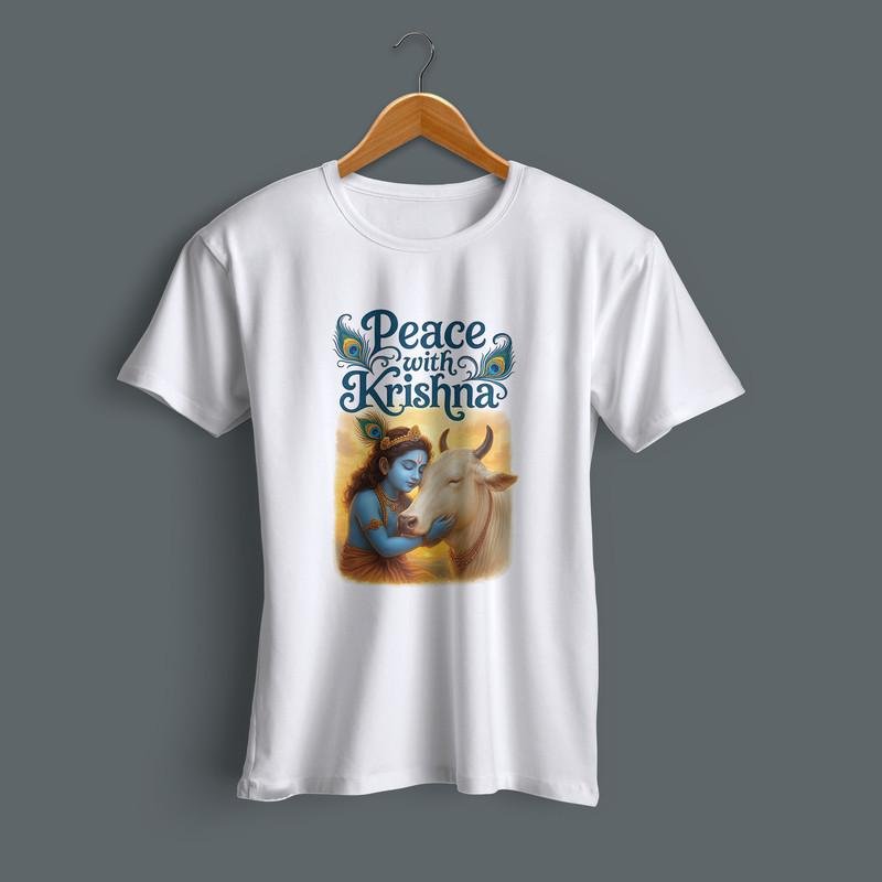 Bring divinity to your style with this Shree Krishna Typography Printed T-Shirt. Made from 100% soft cotton, this white tee is lightweight, breathable, and perfect for daily wear or festive occasions. The bold Krishna design adds a spiritual yet trendy vibe — ideal for Krishna lovers, bhaktas, and fashion-forward men. Pair it with jeans or traditional wear and stand out with devotion and style.