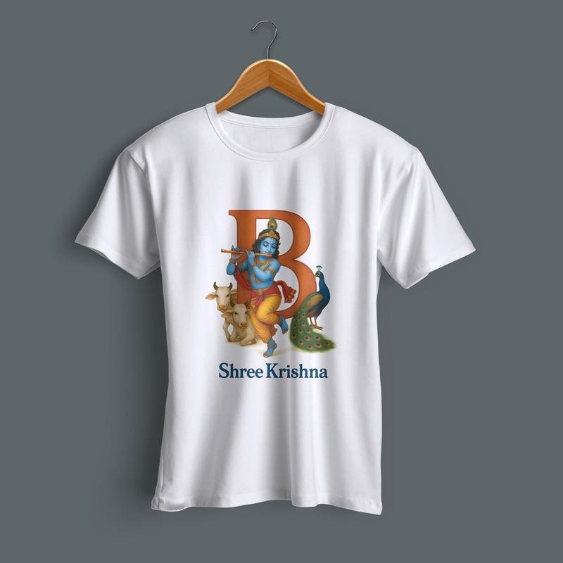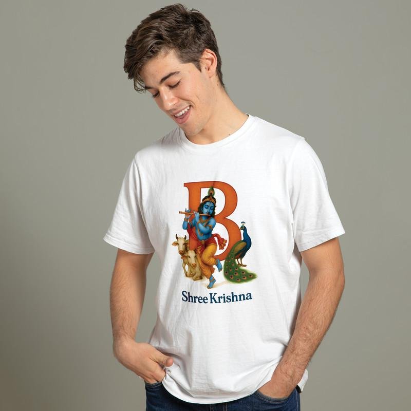 Bring divinity to your style with this Shree Krishna Typography Printed T-Shirt. Made from 100% soft cotton, this white tee is lightweight, breathable, and perfect for daily wear or festive occasions. The bold Krishna design adds a spiritual yet trendy vibe — ideal for Krishna lovers, bhaktas, and fashion-forward men. Pair it with jeans or traditional wear and stand out with devotion and style.