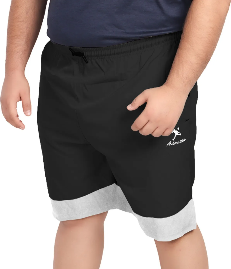 Black Lycra Blend Polyester Elasticated Solid Shorts For Men