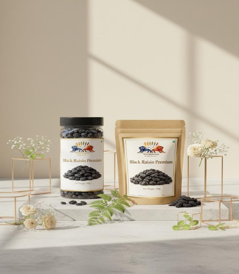 Savor our premium Black Raisins, nature's iron-rich superfood with a naturally sweet flavor and chewy texture. Perfect for snacking, soaking overnight, adding to cereals, desserts, or traditional recipes.