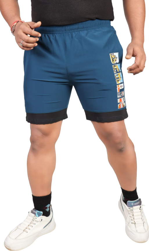 Blue Lycra Blend Polyester Elasticated Solid Shorts For Men