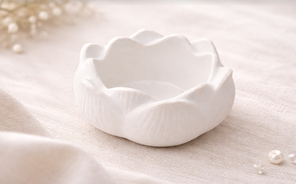 Handcrafted gypsum décor with a smooth matte finish.