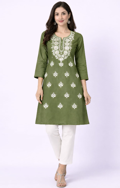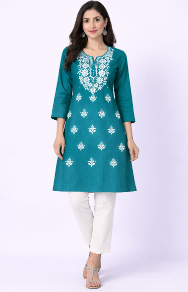 Elevate your everyday ethnic wear with this elegant CPMPUER Chikankari Rayon Kurti. Crafted from soft and breathable rayon fabric, this kurti features beautiful Chikankari embroidery that adds a touch of traditional charm. The comfortable round neck and 3/4th sleeves make it perfect for daily wear, office wear, or casual outings.