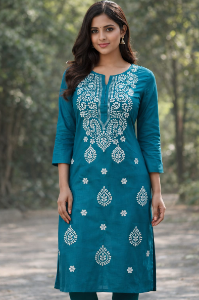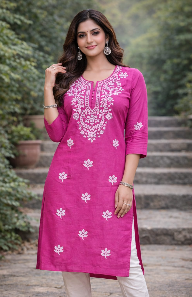 Elevate your everyday ethnic wear with this elegant CPMPUER Chikankari Rayon Kurti. Crafted from soft and breathable rayon fabric, this kurti features beautiful Chikankari embroidery that adds a touch of traditional charm. The comfortable round neck and 3/4th sleeves make it perfect for daily wear, office wear, or casual outings.