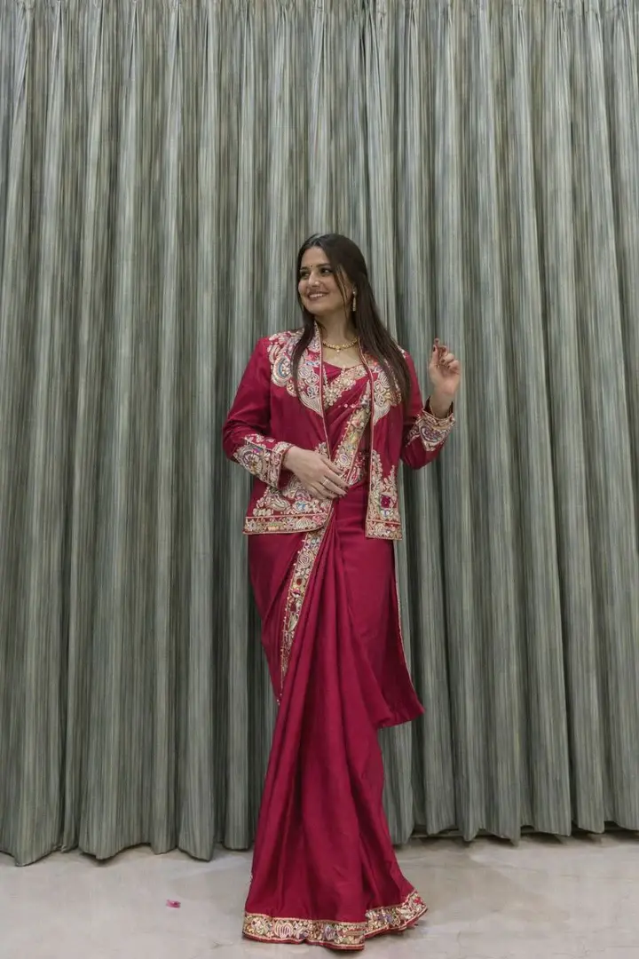 D 47 ❤️ Rani Pink Embroidered Jacket Saree