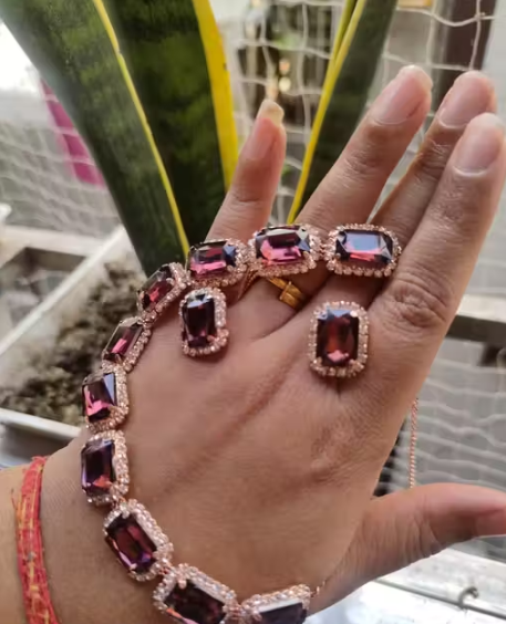 Dazzling Stones Necklace Earring Set For Women (WINECOLOUR)