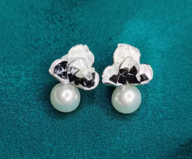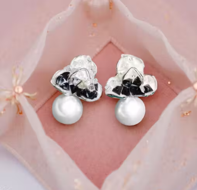 Elegant Silver-Tone Pearl & Crystals Stud Earrings for Women