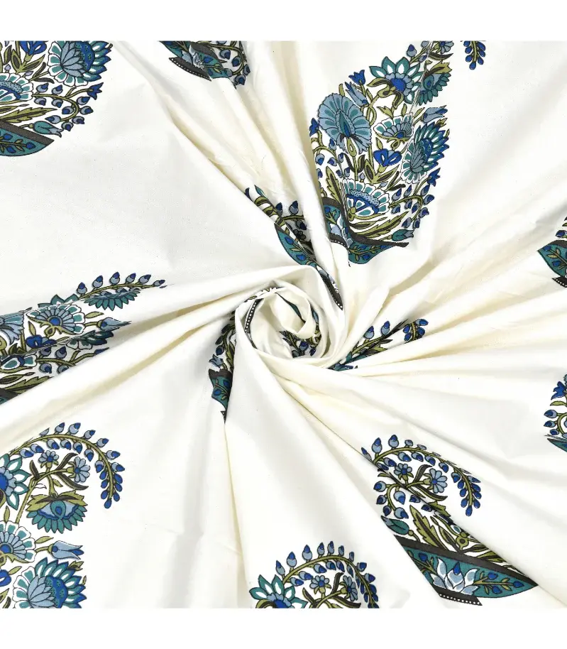 Bring the soothing charm of our Ethnic Padma Block Print Curtains into your home, with a stunning Jaipuri Kairi (mango) flower motif delicately hand-blocked in soothing greens. These curtains are a testament to India's rich block printing heritage, created with the Padma block style on 100% pure cotton fabric.
