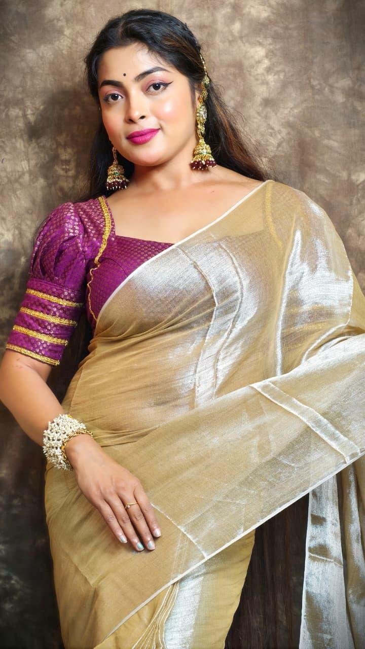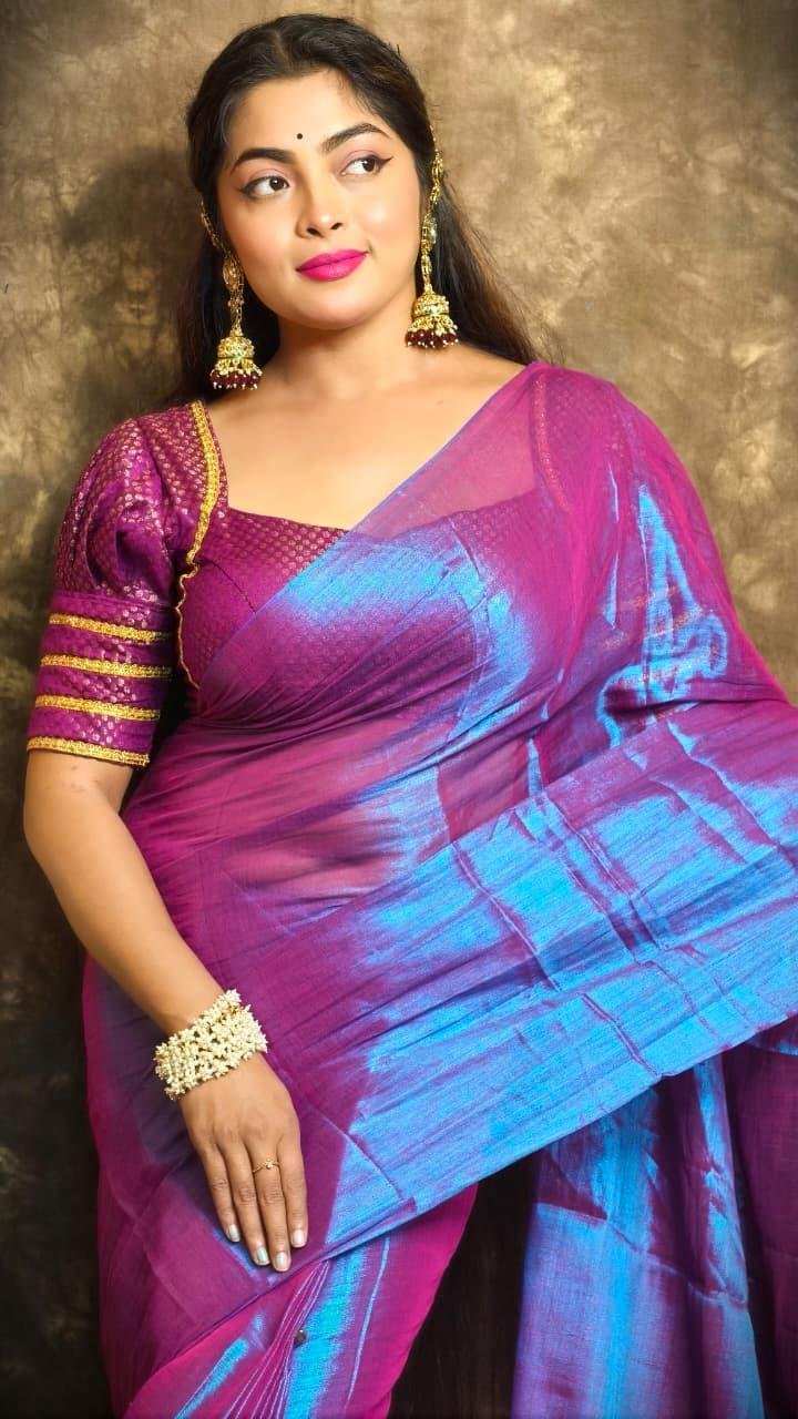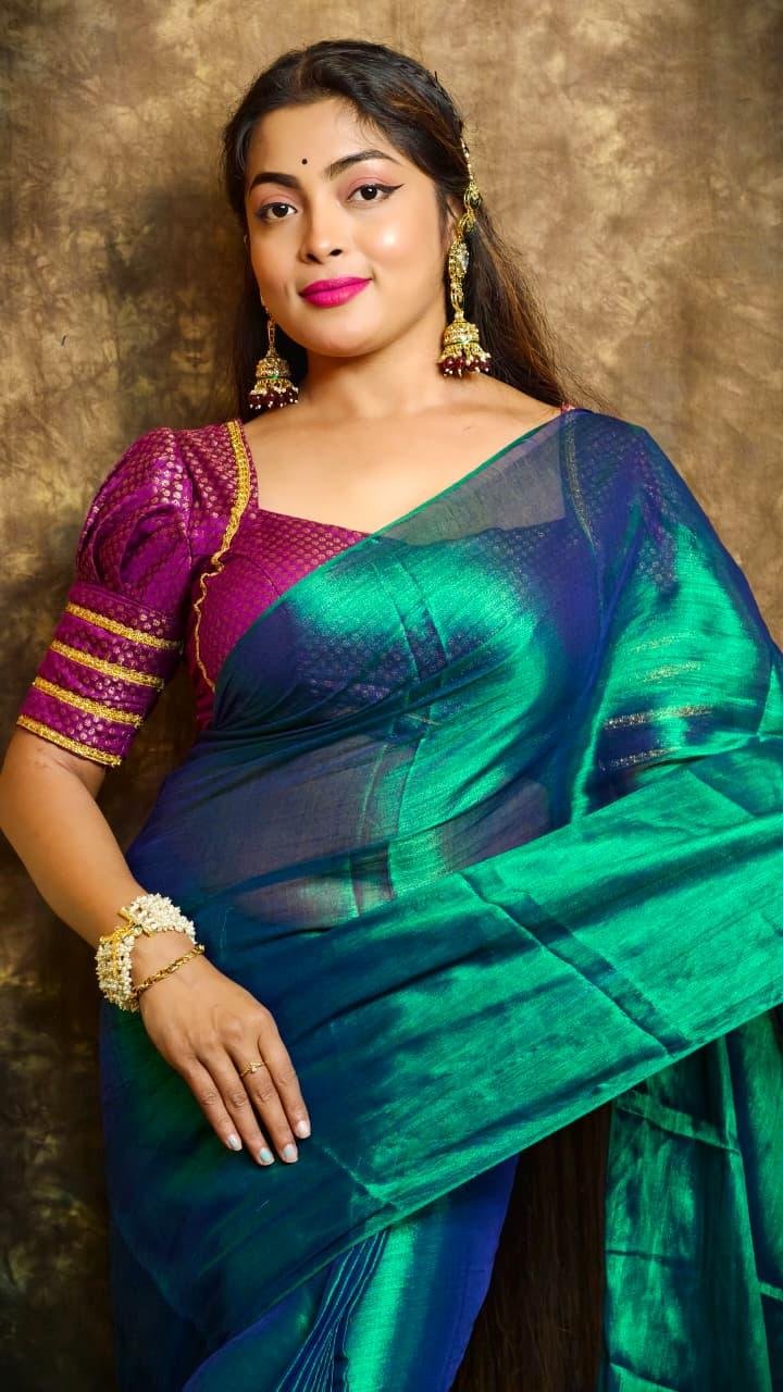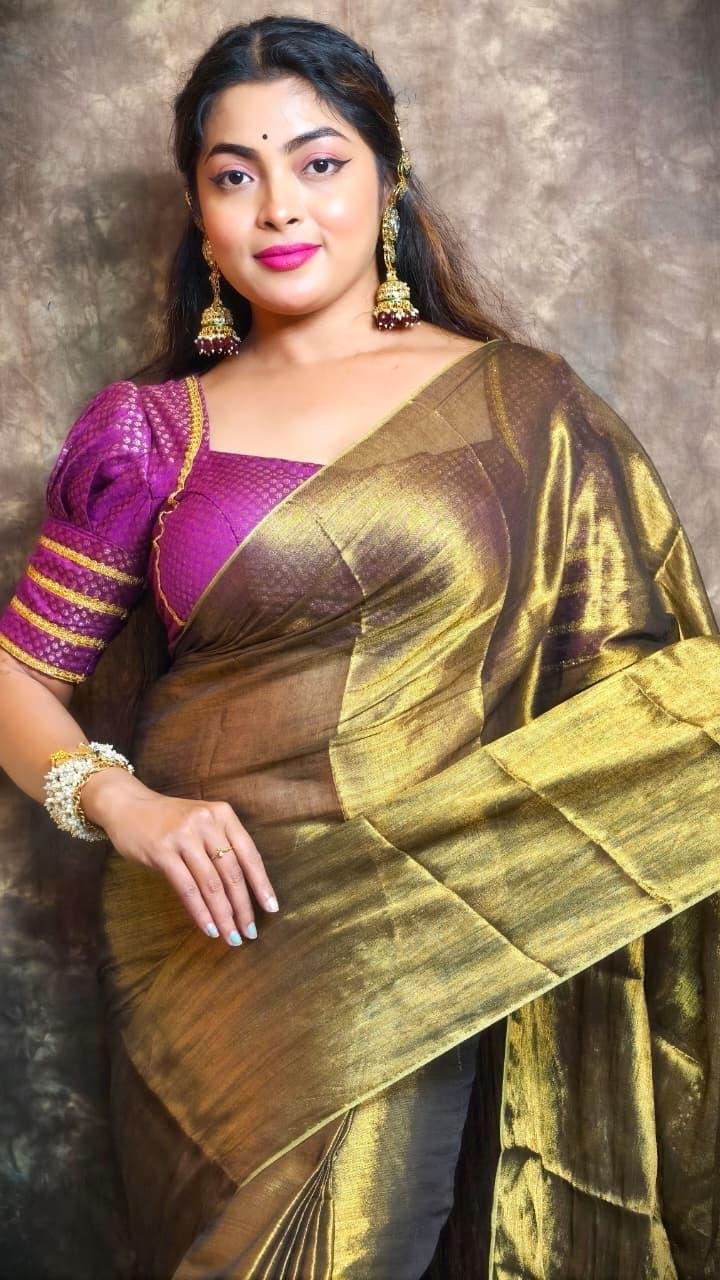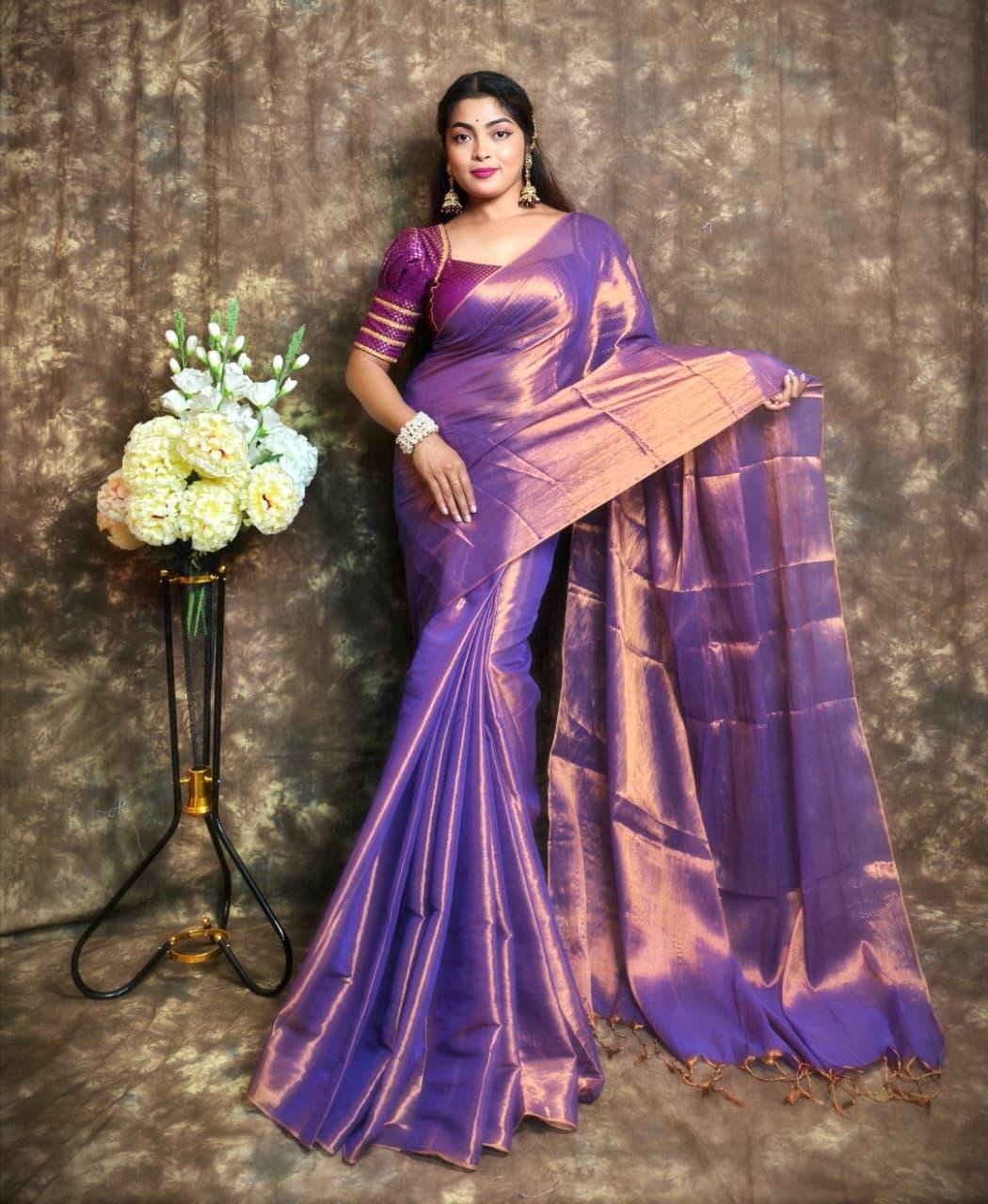 ✨ Exclusive Winter Special Plain Tissue Saree with Blouse ✨