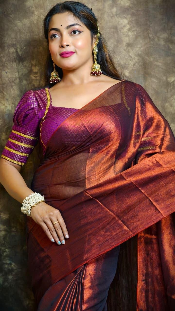 EXCLUSIVE WINTER SPECIAL PLAIN TISSUE SAREE WITH BLOUSE