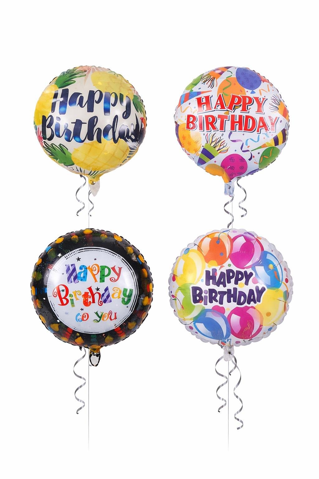 - Gorgeous Moment Printed Happy Birthday Foil Balloon – Classic multicolor Happy Birthday print on a round foil balloon — great as a centerpiece or part of a balloon bouquet.