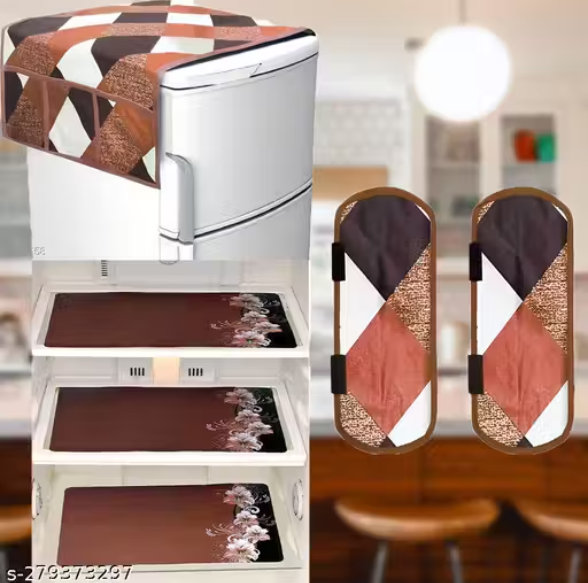 - 🧊 Set Includes: Fridge Top Cover + Handle Covers + Fridge Mats (Total 6 Pieces)