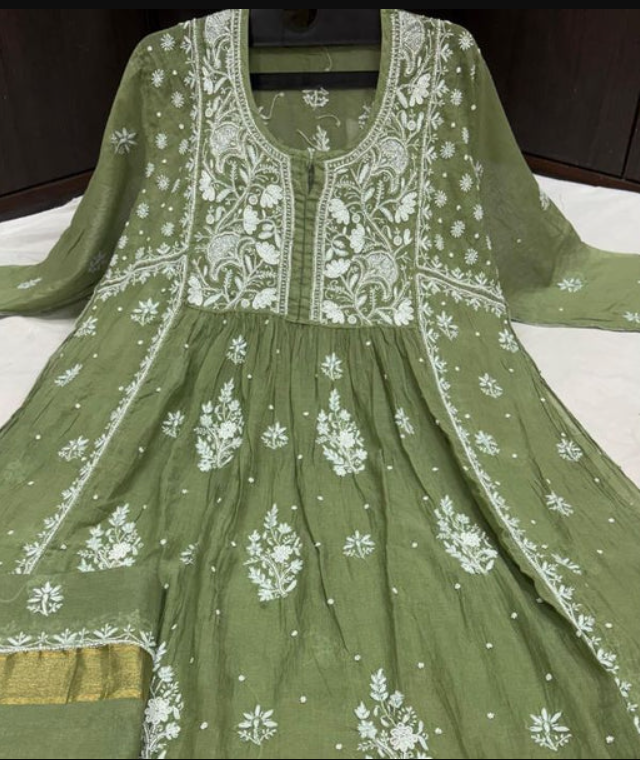 - ✨ Embroidery: Intricate hand-embroidered Lucknowi Chikankari showcasing timeless craftsmanship