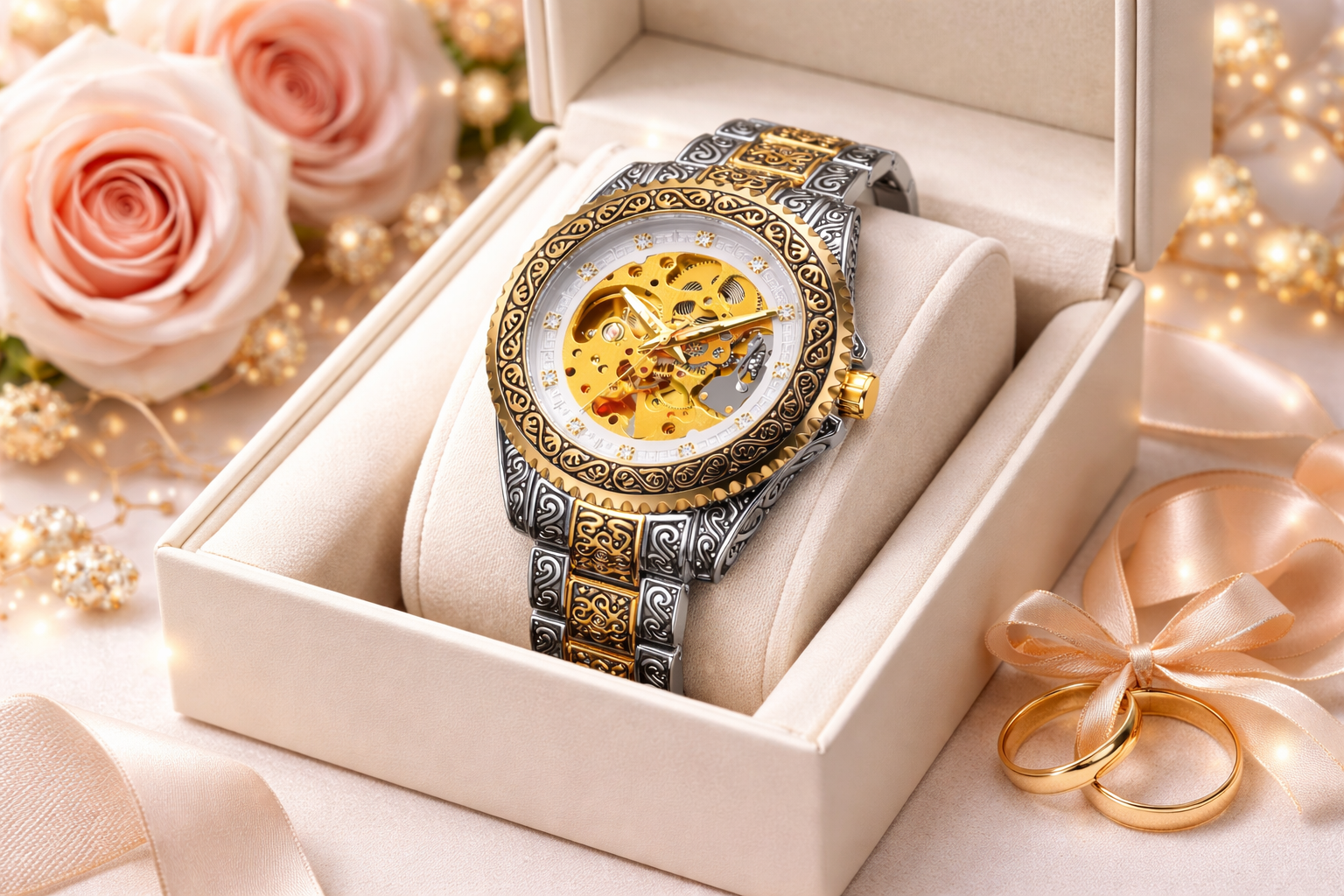 Whether worn as a statement accessory or gifted to a watch enthusiast, this mechanical timepiece reflects sophistication, precision, and enduring style.