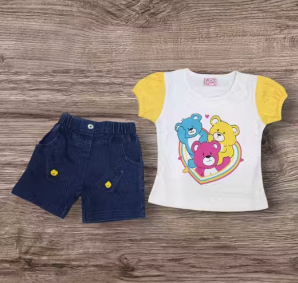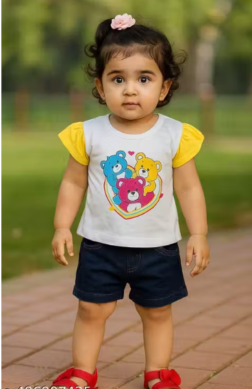 This Kid Girls Top & Shorts Set features a stylish round neck top with a printed design, perfect for both party and casual wear. Made from soft, comfortable fabric, it ensures all-day ease for active kids. The trendy look and easy-to-wear shorts make it ideal for playdates, outdoor activities, family gatherings, and everyday summer wear. A comfortable and fashionable outfit that keeps your little one looking cute and feeling relaxed.