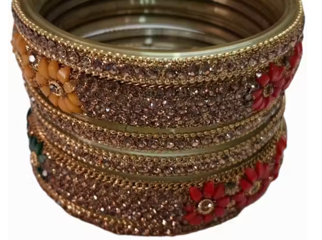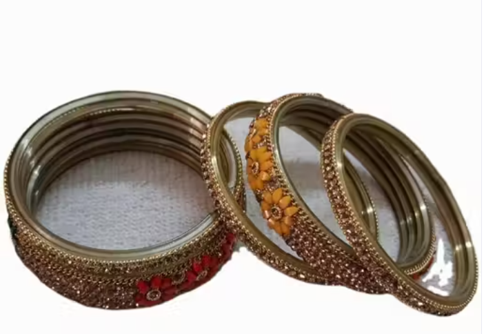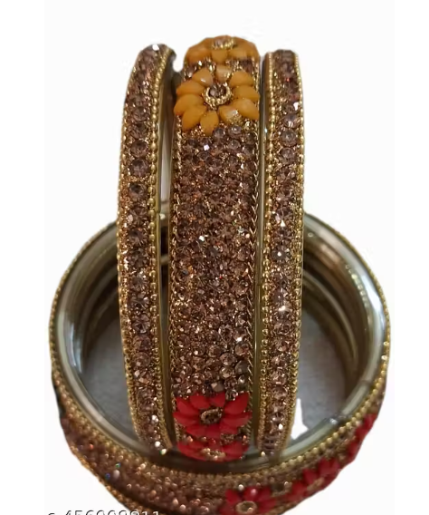 Lac Bangles Set, Floral Lac Bangles, Green Yellow Bangles, Stone Studded Lac Jewelry, Wedding Lac Bangles For Women, Party Wear Lac Bangles, Indian Traditional Lac Bangles, Handmade Lac Jewelry Set