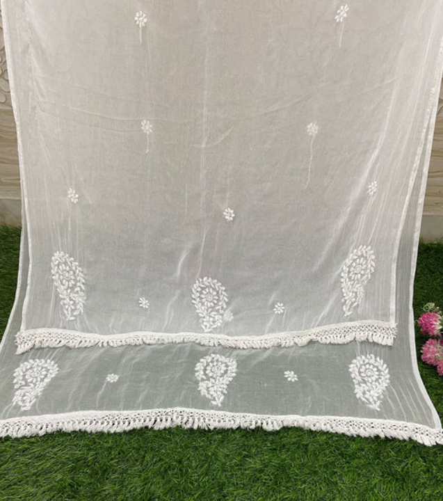 - ✨ Handcrafted Chikankari Lace: Exquisite Phanda and Bhakhiya embroidery enhances the dupatta with traditional elegance.