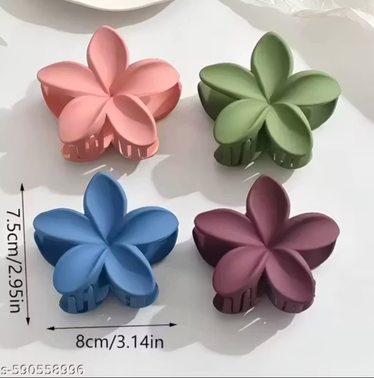 🌸 LetzShoppe Matte Flower Claw Hair Clips – Pack of 4