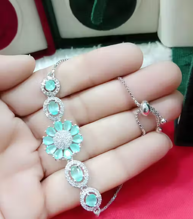 LETZSHOPPE Stylish Adjustable American DIAMONDD Bracelet (Free Size) Mint Green Floral Shape for Girls and Women