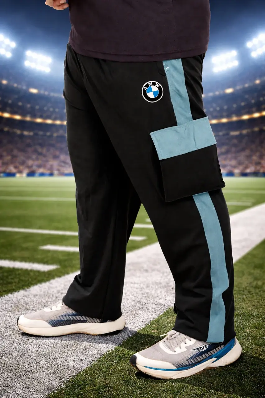 Upgrade your sporty wardrobe with these Men’s Navy Blue BMW Inspired Cargo Track Pants, designed for style, comfort, and everyday functionality. Featuring a sleek navy blue base with contrasting black side panels, these track pants deliver a bold, athletic look perfect for casual outings, travel, or light workouts.