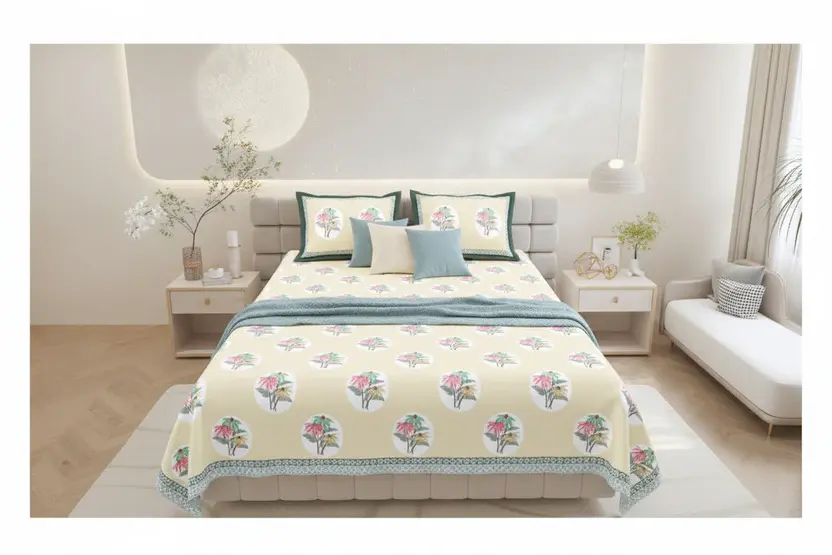 Transform your bedroom into a cozy and stylish retreat with our Classic Cotton Double Bed Sheet Set. Made from 100% pure cotton, this beautifully crafted bedsheet set offers exceptional softness, breathability and long-lasting comfort for a peaceful night’s sleep. Its elegant design and premium finish add a touch of sophistication to your bedroom décor while ensuring everyday luxury and relaxation.