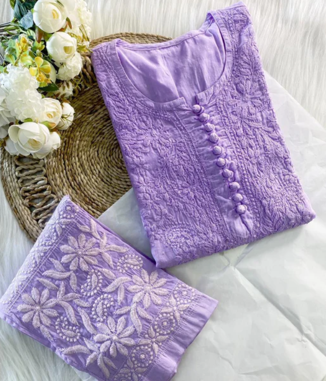 PARI Purple Cotton Dobby Chikankari Kurta Pant Set