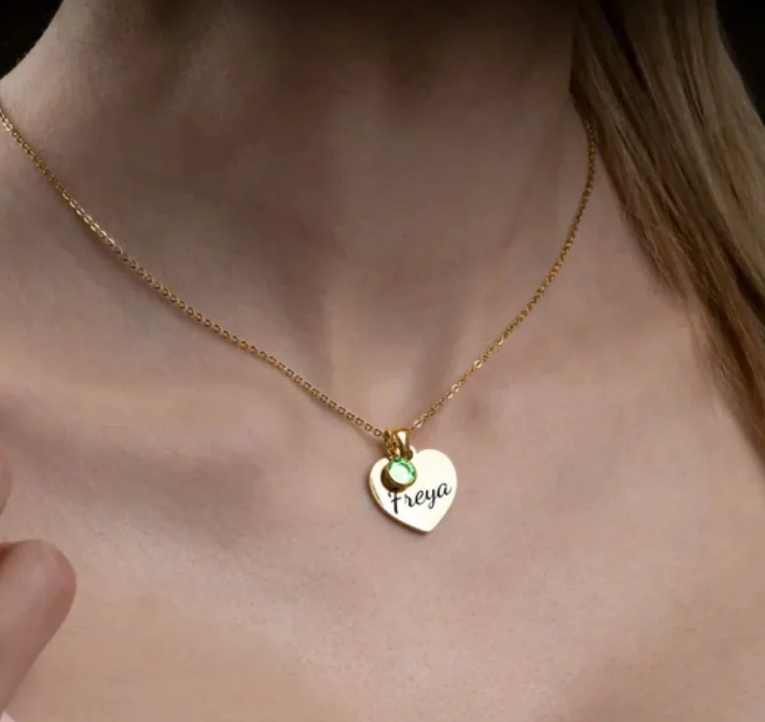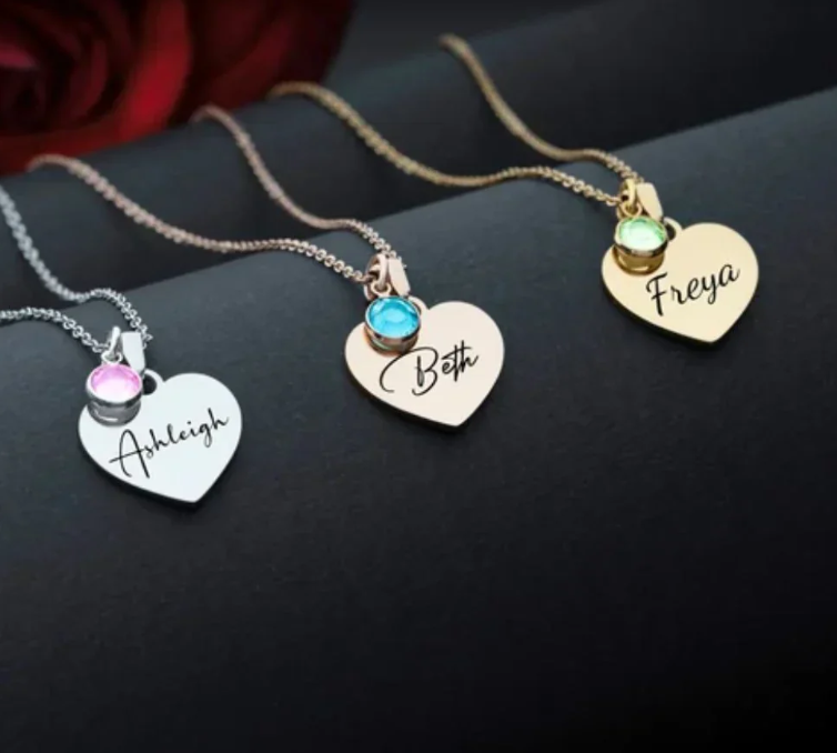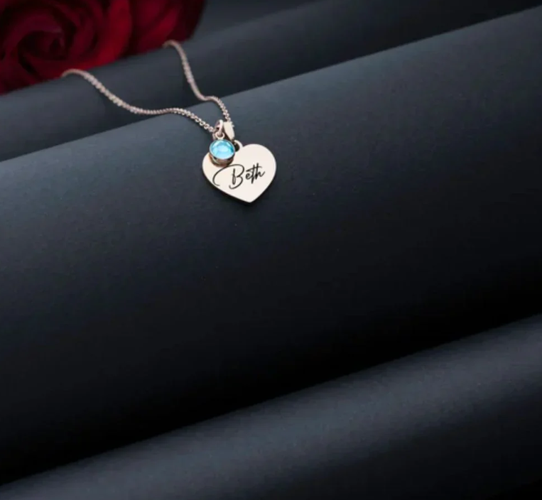 - Style: Personalized Engraved Heart Birthstone Necklace