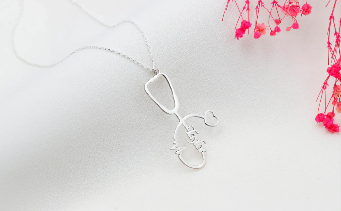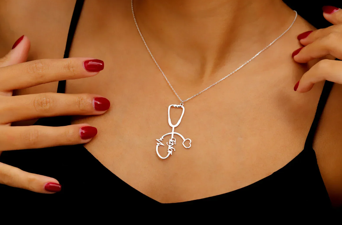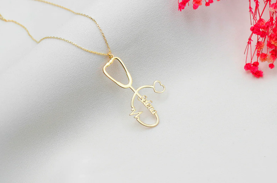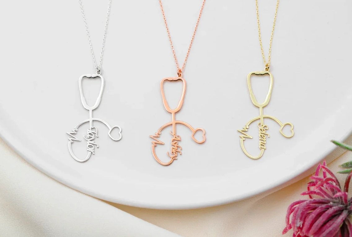Personalized Stethoscope Necklace with Name, Nurse and Doctor Jewelry Gifts, Custom Stethoscope Pendant, Everyday Wear Medical Student Gifts