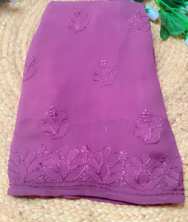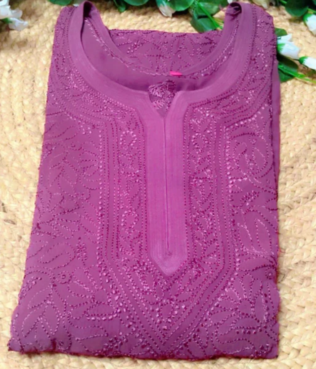 - Work: Full front Jaal design in fine shadow Resham (thread) Chikankari, all done by hand