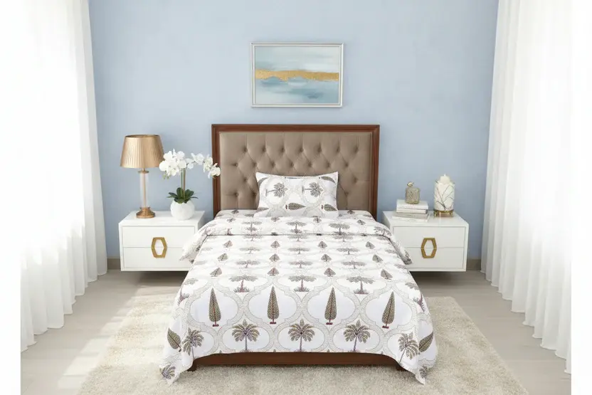 Experience the luxury of high-quality cotton with this premium single bed sheet set. Designed for both comfort and durability, this bed sheet boasts long-lasting color fastness and a lustrous finish that will keep your bed looking elegant and inviting. With a thread count of 240, this bed sheet offers softness and strength, making it perfect for daily use.