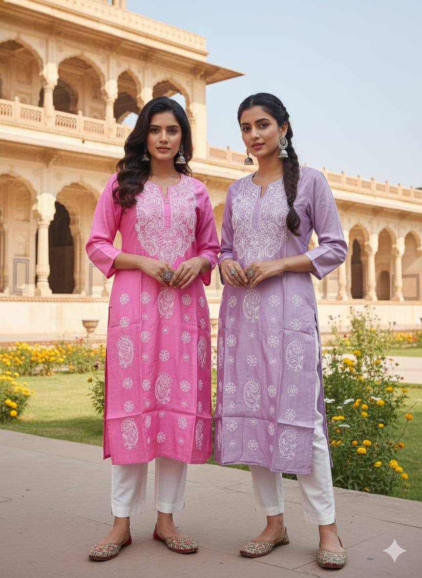 Dyeable fabric pure chanderi chikan kurti with mukesh add-on fanda and bakhiya work which goes with every kurta and enhance your personality can be dyed any customized colors of your choice.