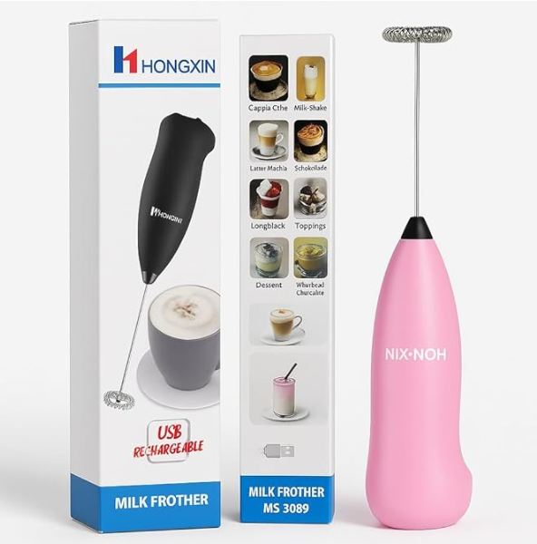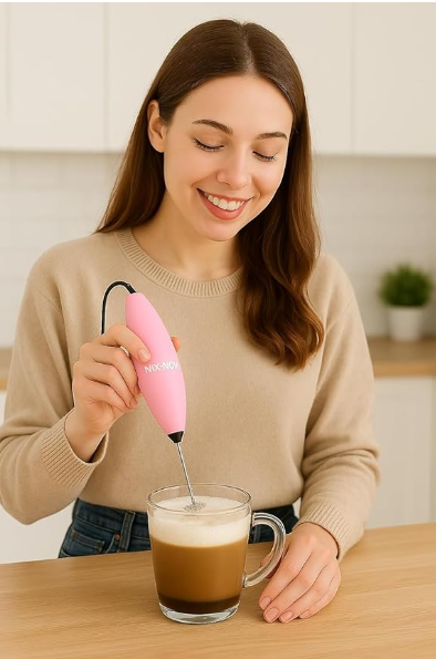 - RECHARGEABLE CONVENIENCE: USB powered milk frother with sleek pink design for easy charging and portable use - perfect for home, office, or travel coffee making