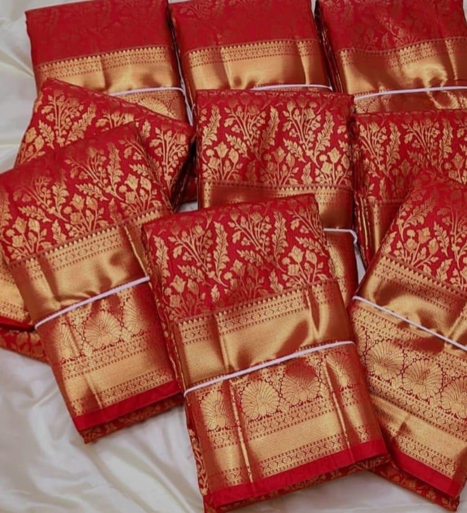 This stunning Red Dharmavaram Butterfly Silk Saree is a masterpiece of craftsmanship, combining traditional elegance with contemporary charm.The body of Red Dharmavaram Butterfly Silk Sareefeatures an intricate floral and butterfly motif, delicately woven with multicolored threads, creating a tapestry of vibrant life and beauty. The border of Red Dharmavaram Butterfly Silk Saree showcases a rich contrast with luxurious golden zari work on a deep red base, presenting intricate traditional patterns that exude regal sophistication perfect for weddings, festive occasions.
