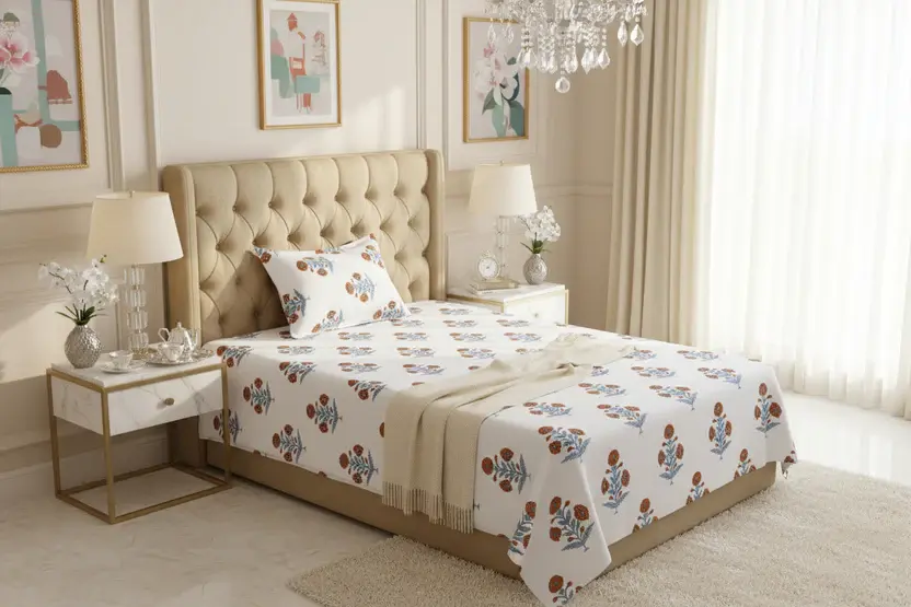 Experience the luxury of high-quality cotton with this premium single bed sheet set. Designed for both comfort and durability, this bed sheet boasts long-lasting color fastness and a lustrous finish that will keep your bed looking elegant and inviting. With a thread count of 240, this bed sheet offers softness and strength, making it perfect for daily use.