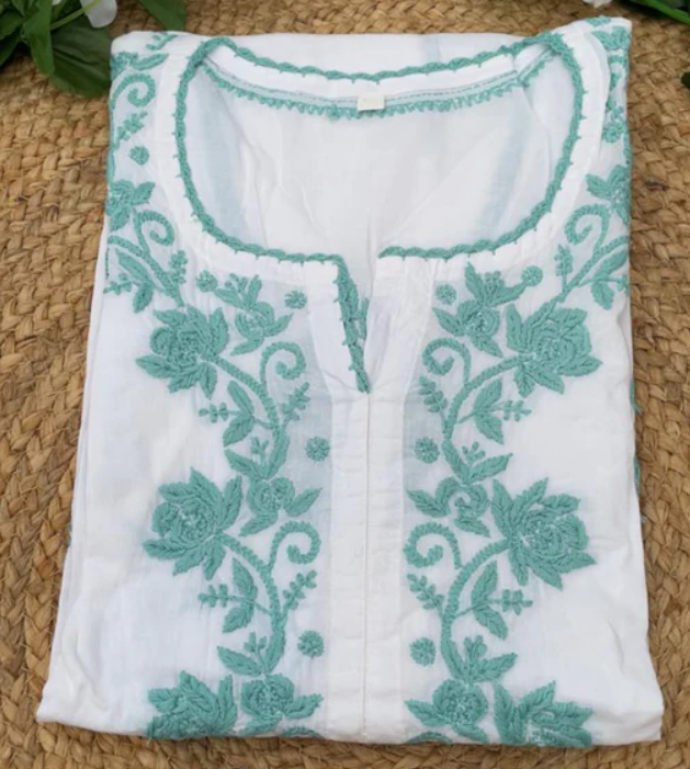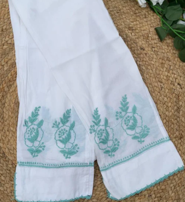 RUHANI Teal Pure Mul Cotton Chikankari Kurti and Pant Set