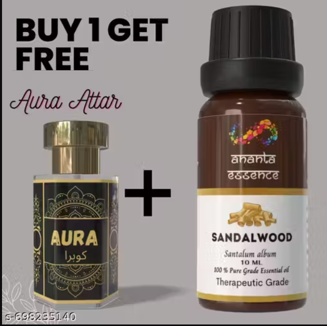 Sandalwood Essential Oil for Aromatherapy & Home Fragrance with Free Aura Attar | Essential Oil for Diffuser & Soap Making | Sandalwood Aroma Oil | 10 ml