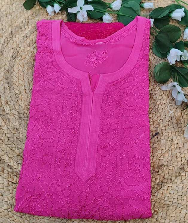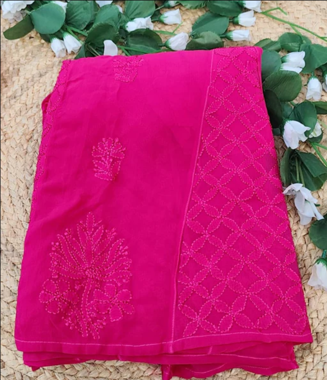 - Work: Full front Jaal design in fine shadow Resham (thread) Chikankari, all done by hand