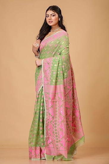 Simonart and Printing Women’s Traditional Bengal Cotton Silk Jamdani Saree | Handwoven Jamdani Saree
