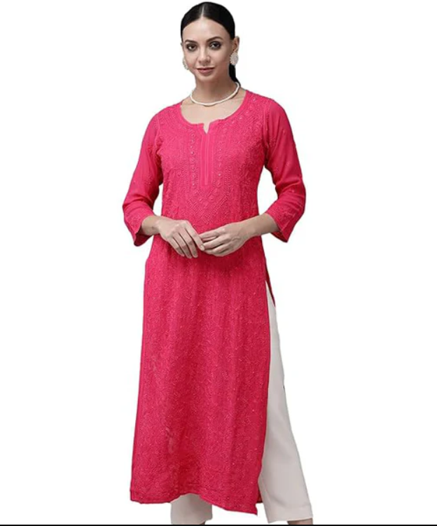 SONAM Fuschia Pure Viscose Resham Thread Chikankari Kurta