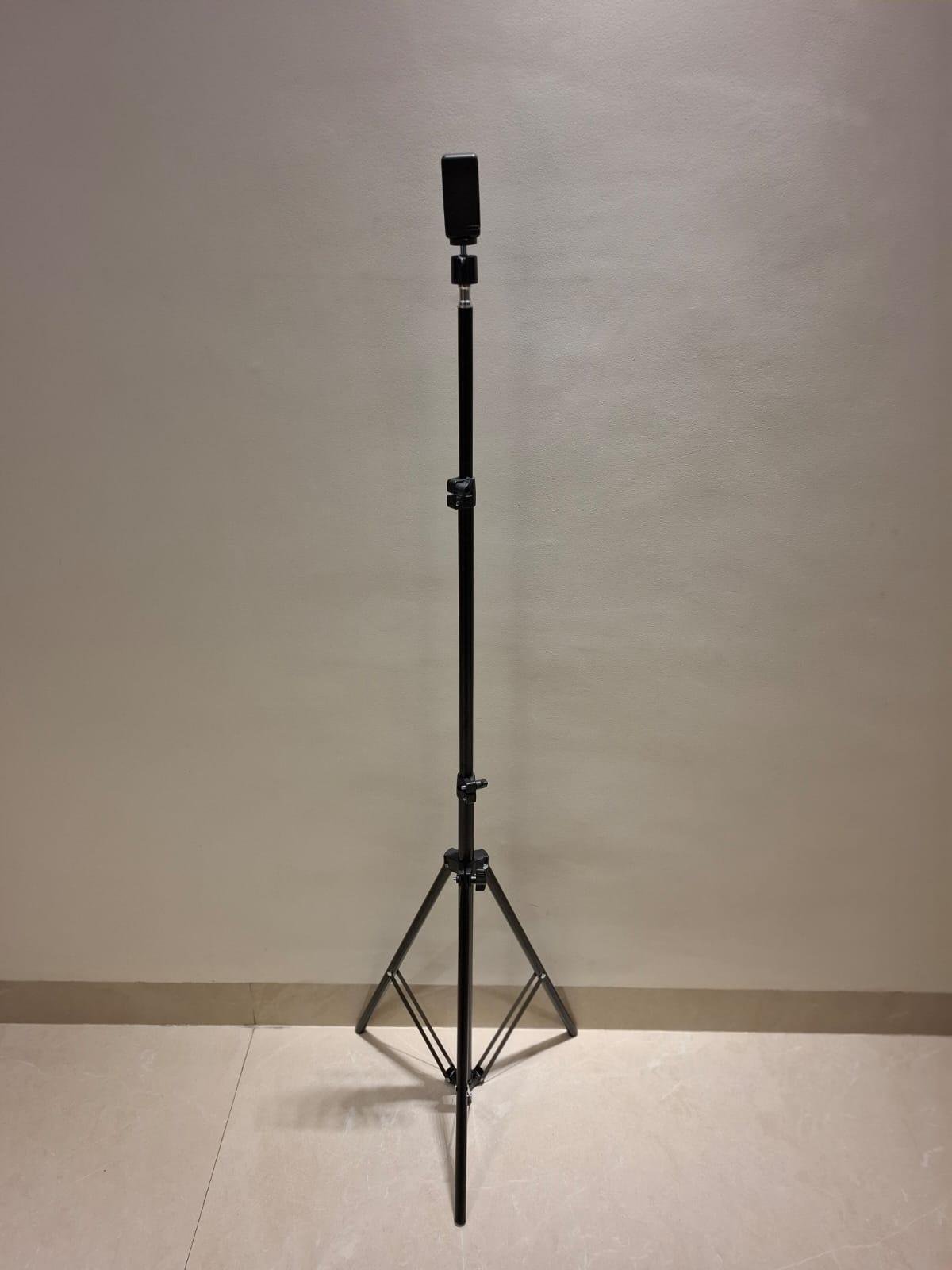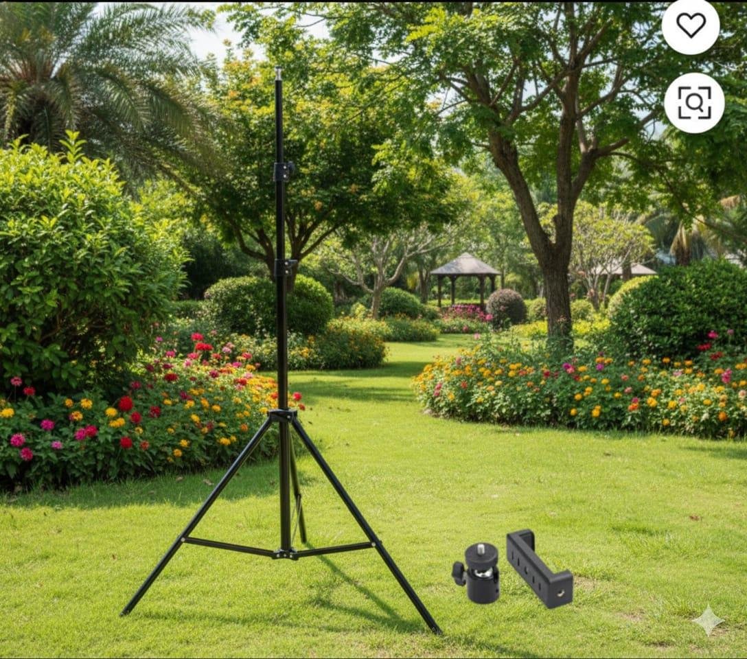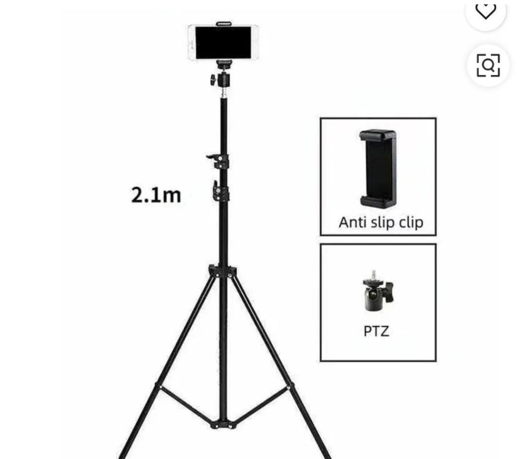 Tripod - expendable up to 7 ft with phone holder & 360 degree ball head mount. Light weight. Foldable up to 66 cm. Portable. Useful for videography photography reel making karaoke playing & watching. Black colour