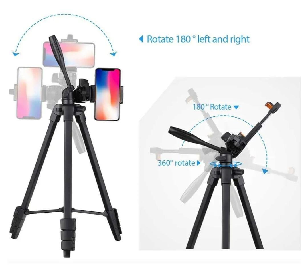 Professional Tripod 3366 for DSLR, Camera, Mobile Phone Height upto 4.6 ft Max load 4 kg. Portable Lightweight ABS+Metal. Phone Holder. Hand operated lifting shaft. With carry Bag. Black