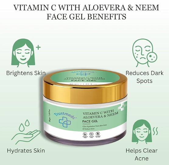 Trustmeds Vitamin C, Aloe Vera & Neem Face Gel – Glow & Acne Control