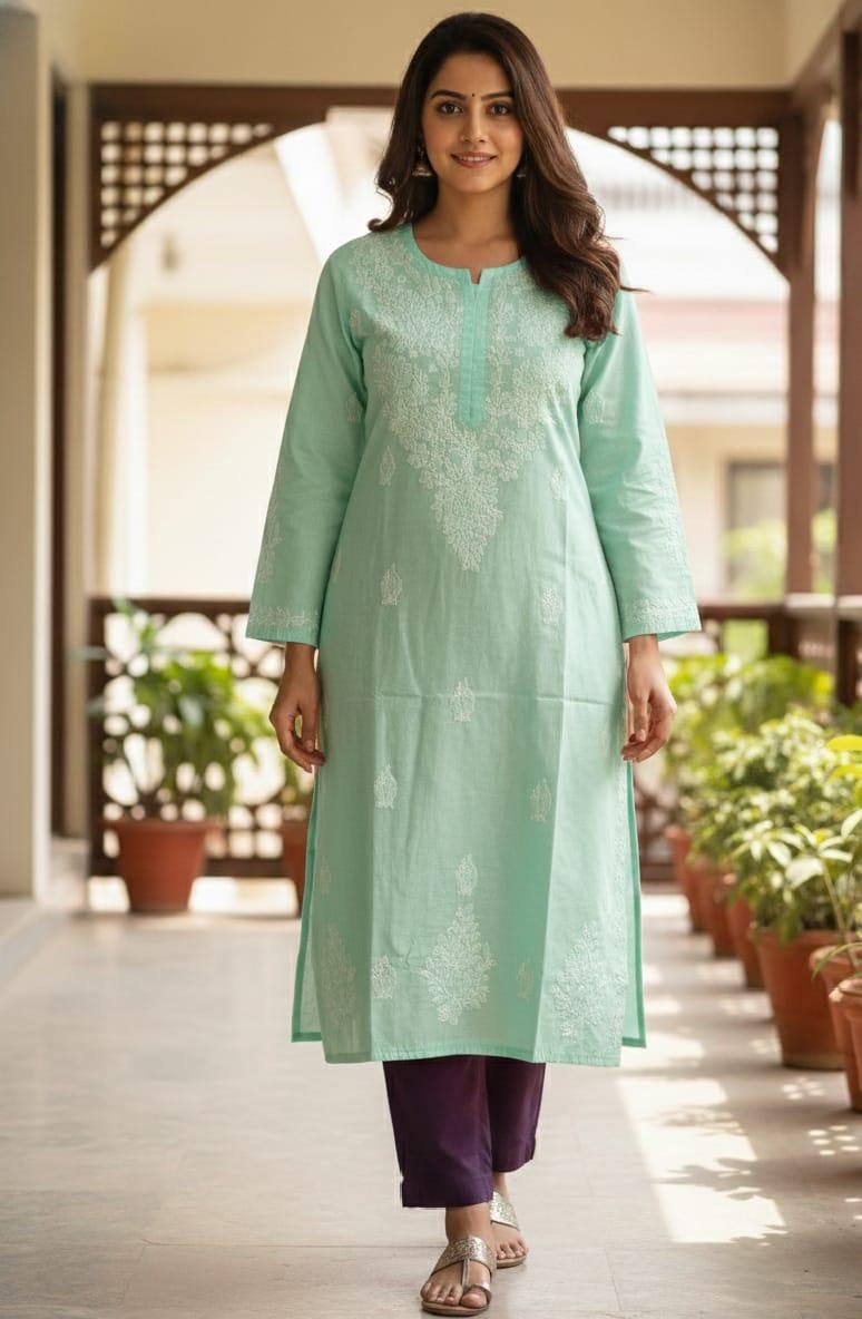 Voil cotton Chikankari kurta fabric with great comfort and have hand embroidery from the artisans of Lucknow can be carried casually for Royal look.
