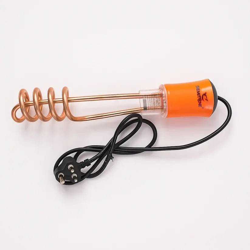 - This Immersion Water Heater Rod is a reliable and efficient solution for instant hot water. Featuring a premium copper heating element, it ensures faster heating while maintaining durability and long life. The shockproof handle adds safety, while the sturdy power cord allows safe operation. Its portable and lightweight design makes it ideal for use in homes, hostels, and during travel, providing quick and easy access to hot water.