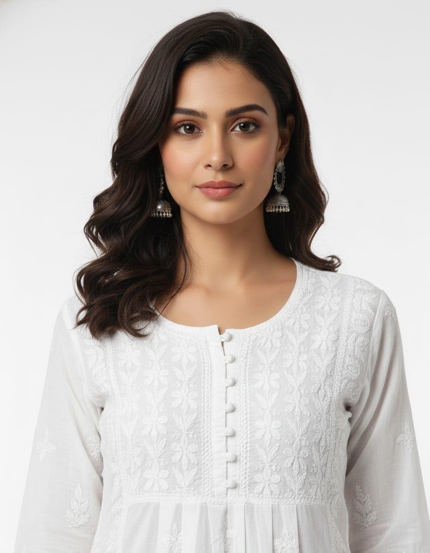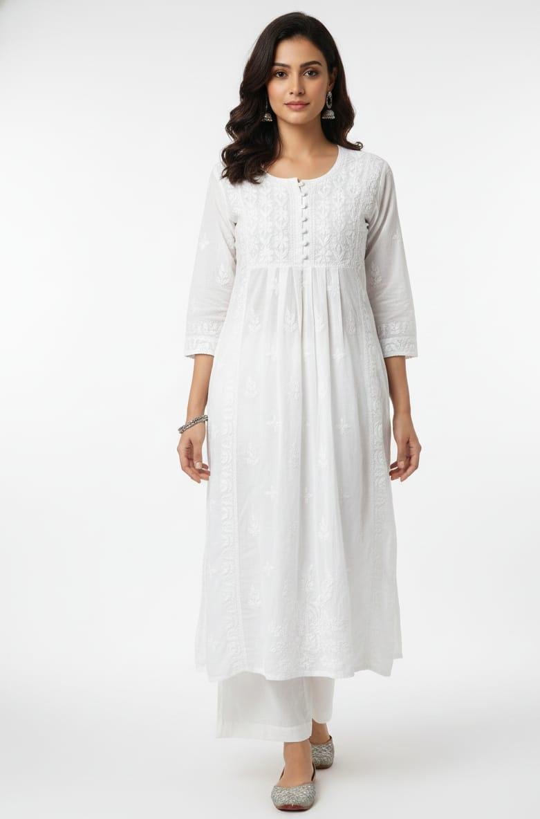 Mul mul kurta dyeable fabric with great comfort and have hand embroidery from the artisans of Lucknow can be carried casually for Royal look.